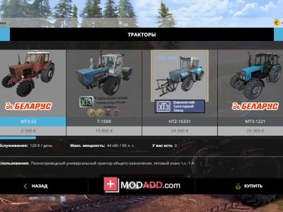 Также приятно выделяется цена. Советские машины, комбайны, трактора, прицепы, оборудование дешевое. Вам даже не понадобиться устанавливать мод на деньги. Играя на этой технике, вы не просто ощущаете ностальгические нотки, но и серьезно экономите финансы. Примечательно, что машины справляются даже с самыми серьезными задачами в Фермер Симуляторе. Мод оценят как фанаты игры, так и новички. Такого большого пака русской техники Farming Simulator 2015 вы еще не видели.