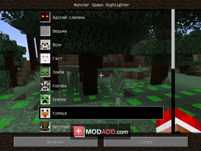 Установив данное дополнение, игрок сможет увидеть возможное место спавна какого-либо моба. Нажав на клавишу ''L'', Вы сможете вызвать главное меню мода. В нем присутствуют все "ванильные" мобы игры и, опираясь на местонахождение, Вы можете выбрать подсветку нужных Вам мобов. Мод Монстер спаун хайлайтер будет очень полезным дополнением к игре и найдет место при строительстве чего-либо, организации различных ферм мобов или просто для удобного и спокойного геймплея.